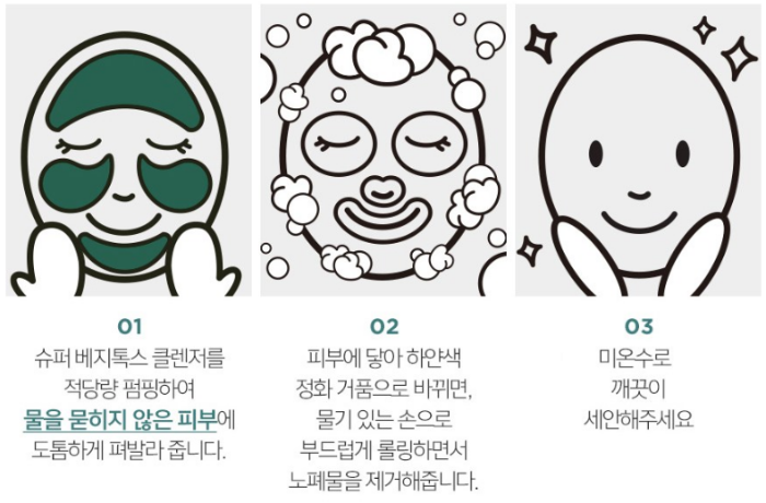 이 모든 과정을 슈퍼베지톡스 클렌저 하나로 해결! 바쁜 아침이나 피곤한 저녁에 정말 간편해졌어요.